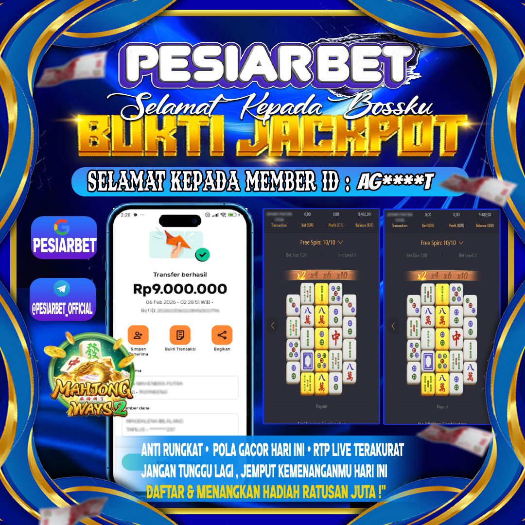 PESIARBET Bukti Kemenangan SLOT PESIARBET Bukti Kemenangan SLOT MAHJONG WAYS Selamat Kepada Id : AG*****T di di Atas Withdraw Rp 9,000,000…
