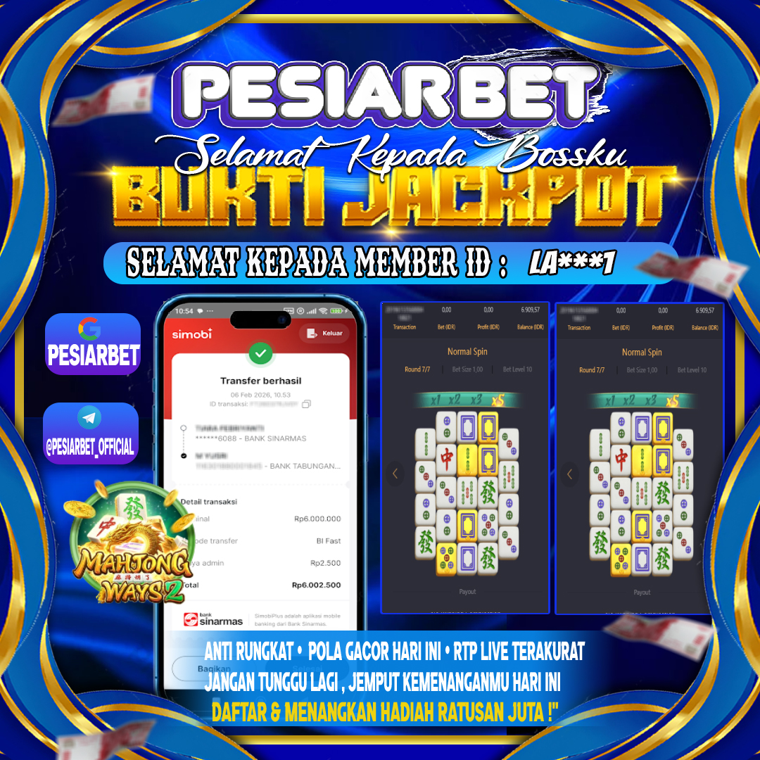 PESIARBET Bukti Kemenangan SLOT PESIARBET Bukti Kemenangan SLOT MAHJONG WAYS Selamat Kepada Id : LA*****1 di di Atas Withdraw Rp 6,000,000…