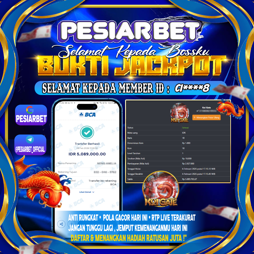 PESIARBET Bukti Kemenangan SLOT PESIARBET Bukti Kemenangan SLOT KOIGATE Selamat Kepada Id : CI*****8 di di Atas Withdraw Rp 5,089,00 Juta…