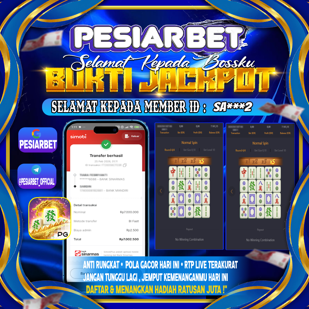 PESIARBET Bukti Kemenangan SLOT MAHJONG WAYS Selamat Kepada Id : SA****2 di di Atas Withdraw Rp 7,000,000 Juta Hari ini. Ditunggu…