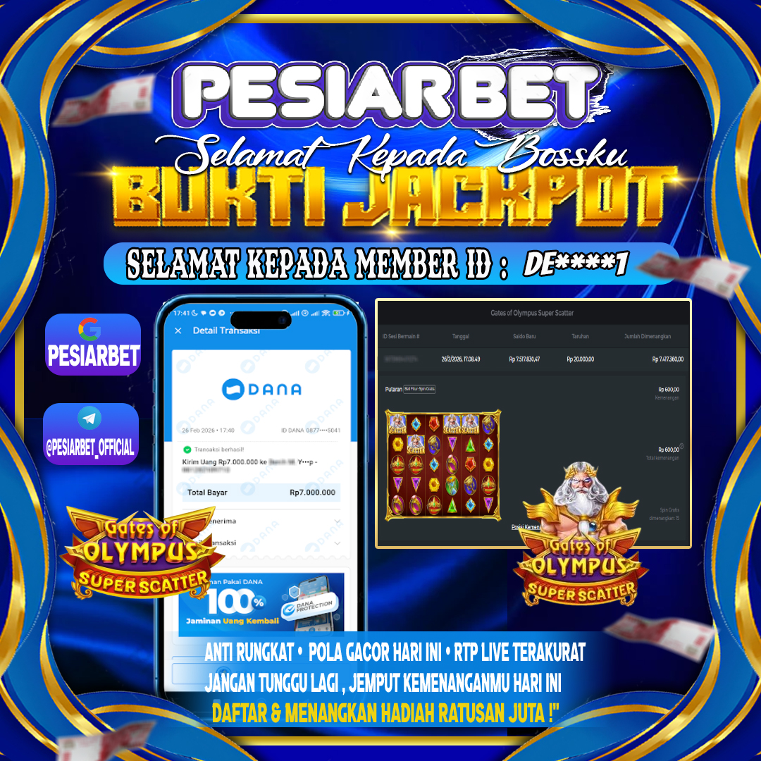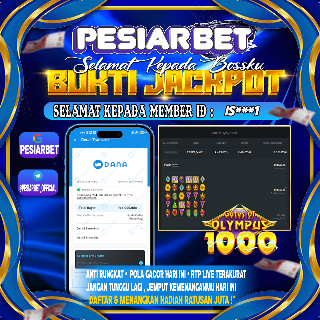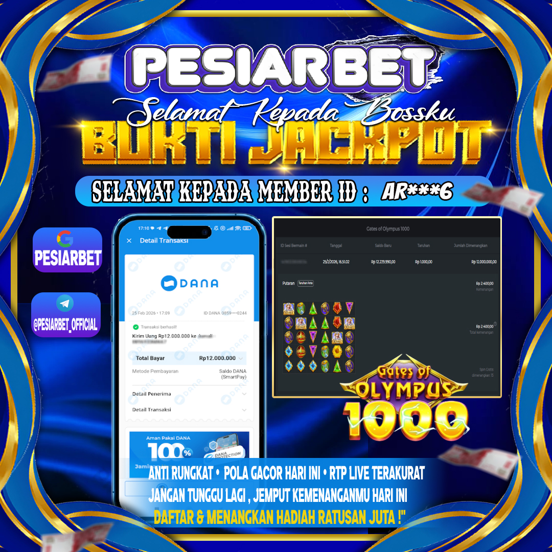 PESIARBET Bukti Kemenangan SLOT GATES OF OLYMPUS 1000 Selamat Kepada Id : AR****6 di di Atas Withdraw Rp 12,000,000 Juta Hari…