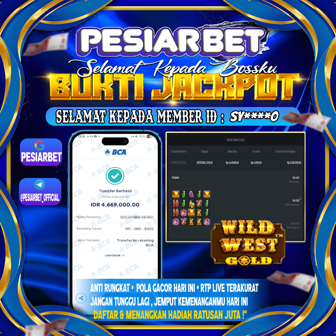 PESIARBET Bukti Kemenangan SLOT WILD WEST GOLD Selamat Kepada Id : SY****O di di Atas Withdraw Rp 4,669,000 Juta Hari ini.…