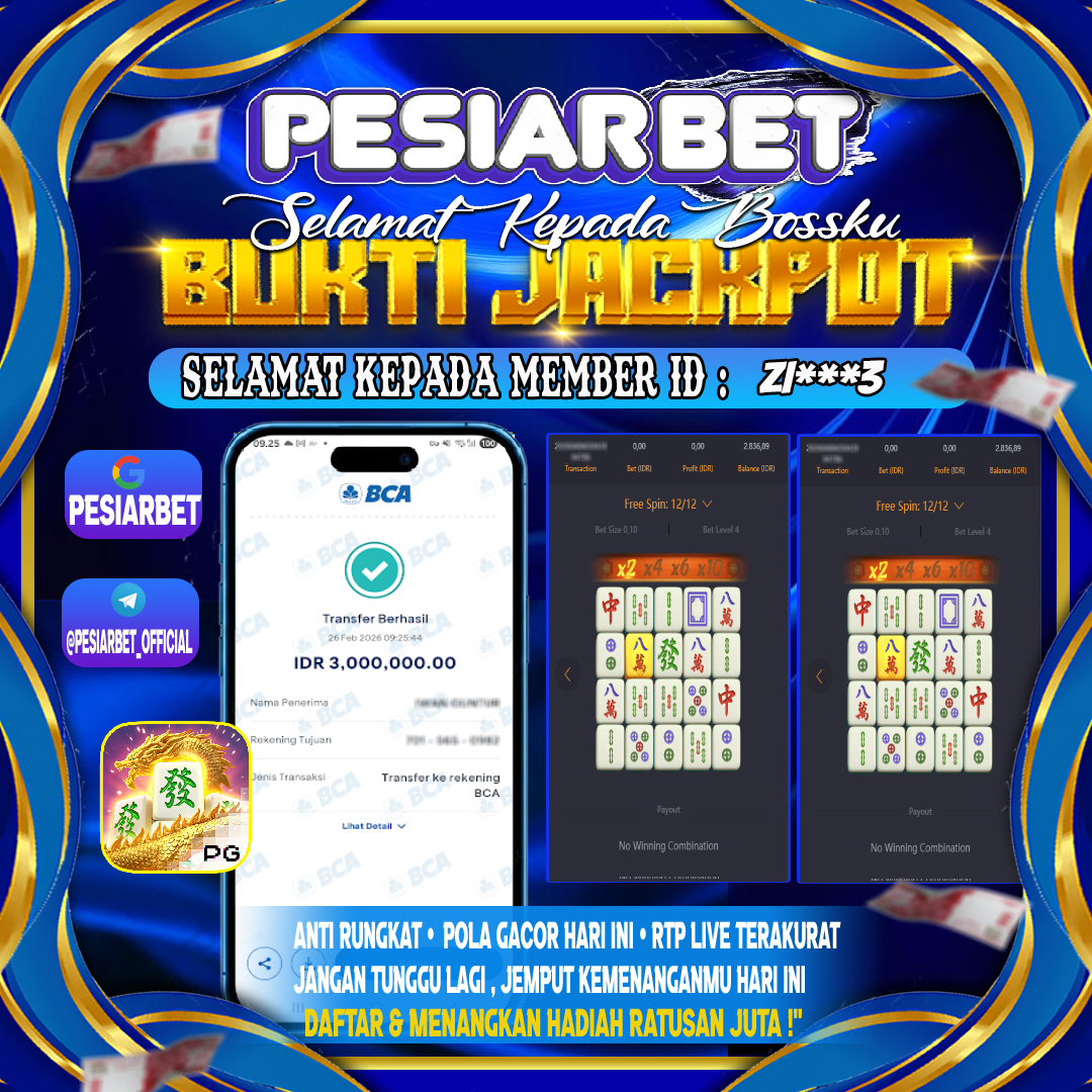 PESIARBET Bukti Kemenangan SLOT MAHJONG WAYS 2 Selamat Kepada Id : HE****H di di Atas Withdraw Rp 6,000,000 Juta Hari ini.…