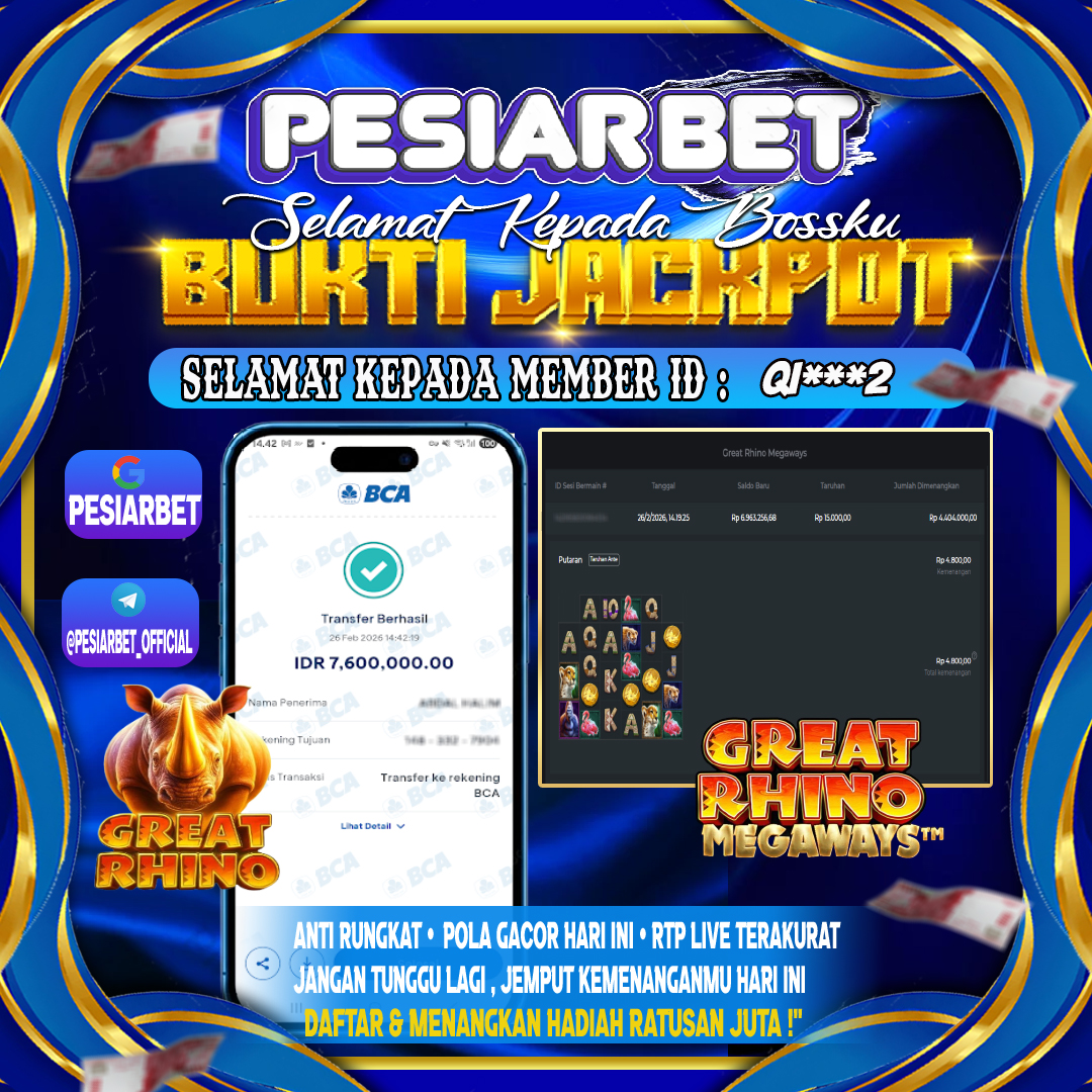 PESIARBET Bukti Kemenangan SLOT GREAT RHINO MEGAWAYS Selamat Kepada Id : MA****M di di Atas Withdraw Rp 35,800,000 Juta Hari ini.…