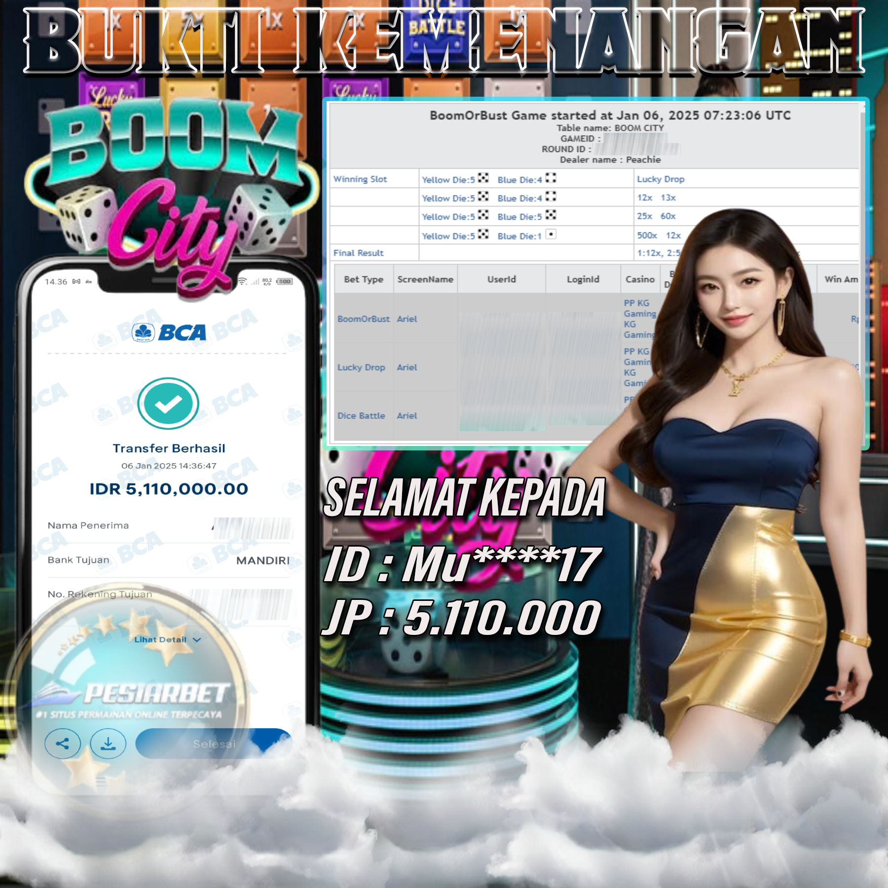 PESIARBET Bukti Kemenangan LIVE CASINO BOOM CITY