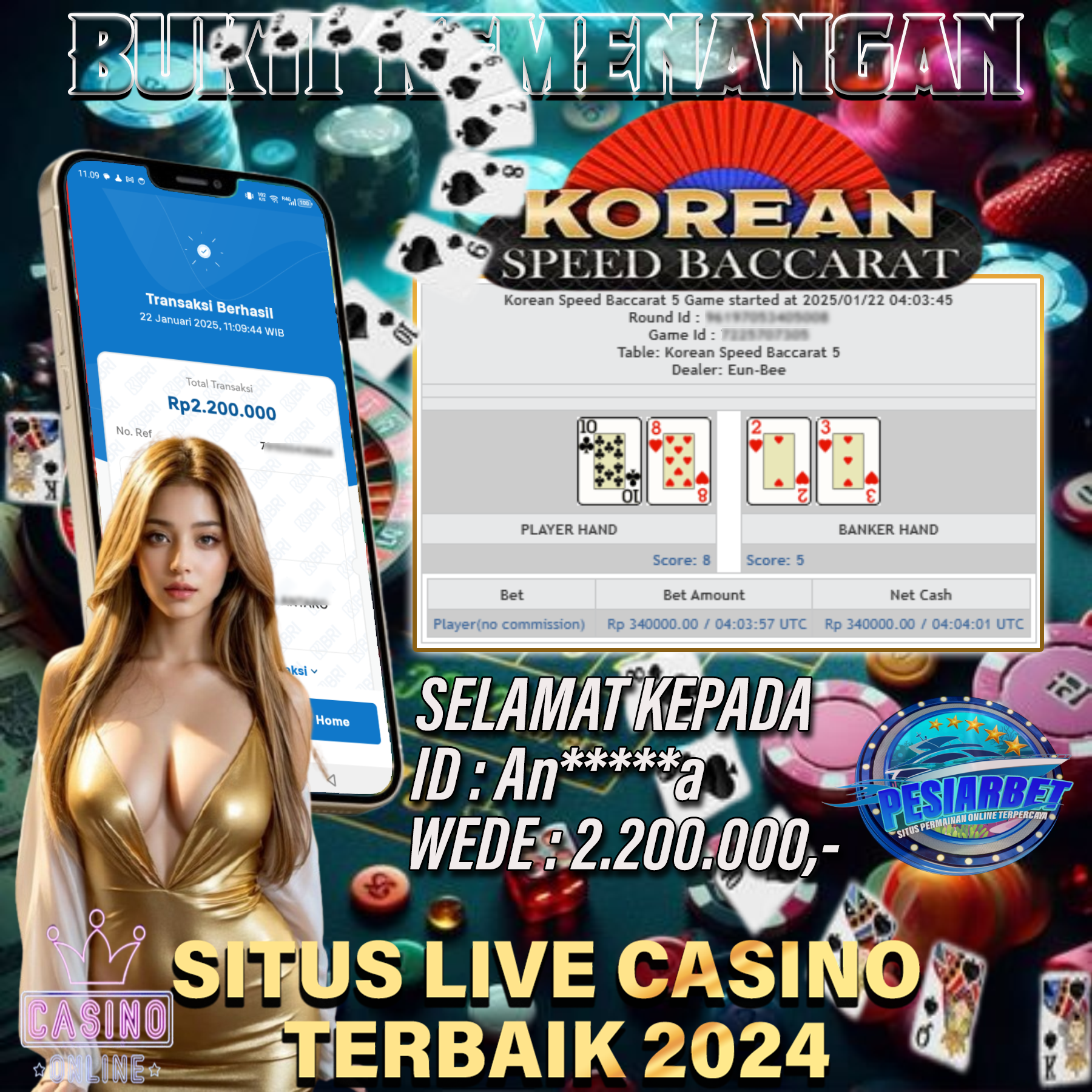 PESIARBET Bukti Kemenangan Live Casino KOREAN SPEED BACCARAT 5