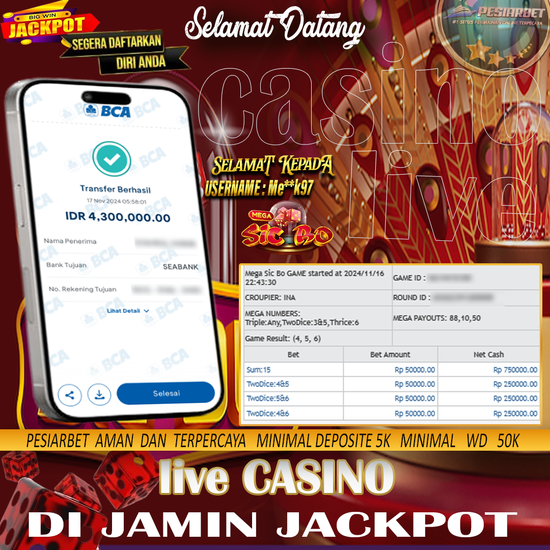 PESIARBET Bukti Kemenangan Live Casino MEGA SIC BO