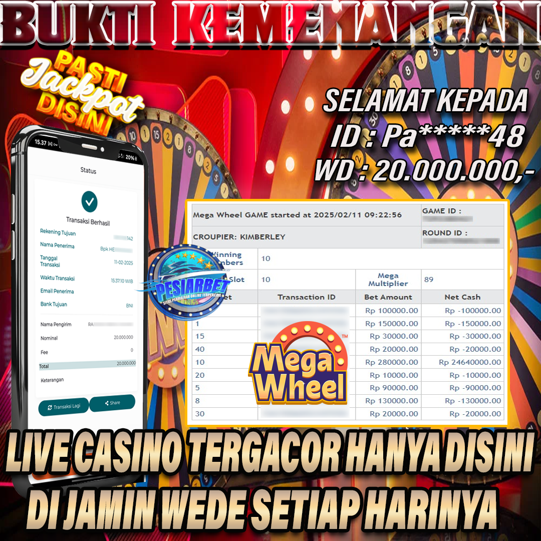 PESIARBET Bukti Kemenangan Live Casino MEGA WHEEL
