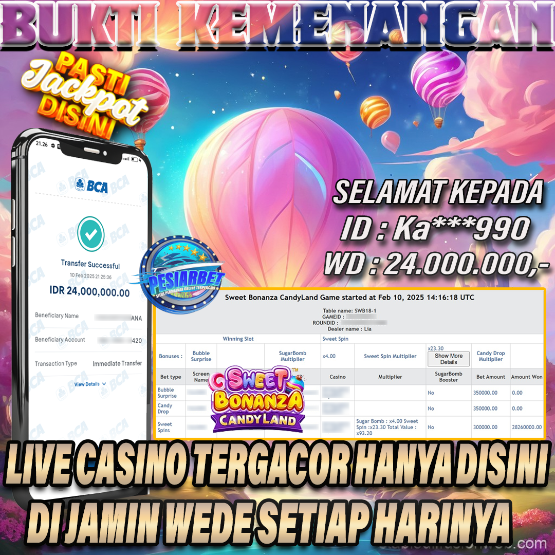 PESIARBET Bukti Kemenangan Live Casino SWEET BONANZA CANDYLAND