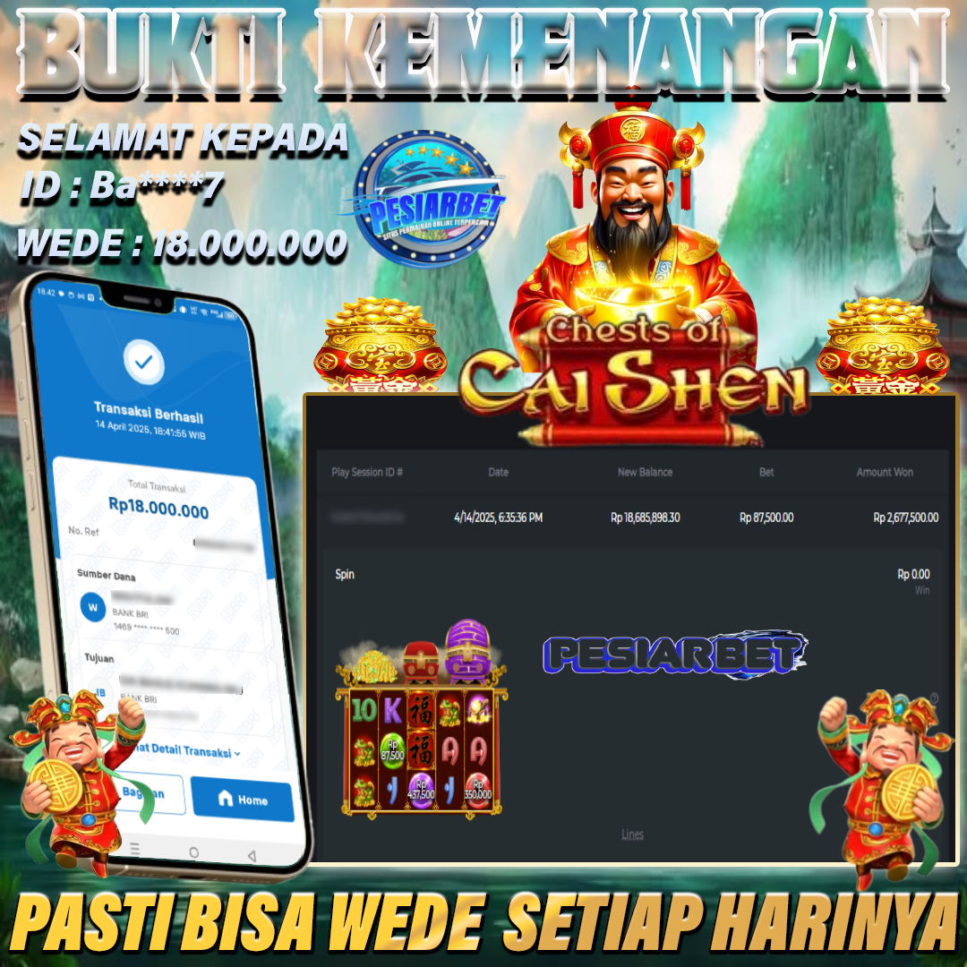 PESIARBET Bukti Kemenangan SLOT CHESTS OF CAI SHEN