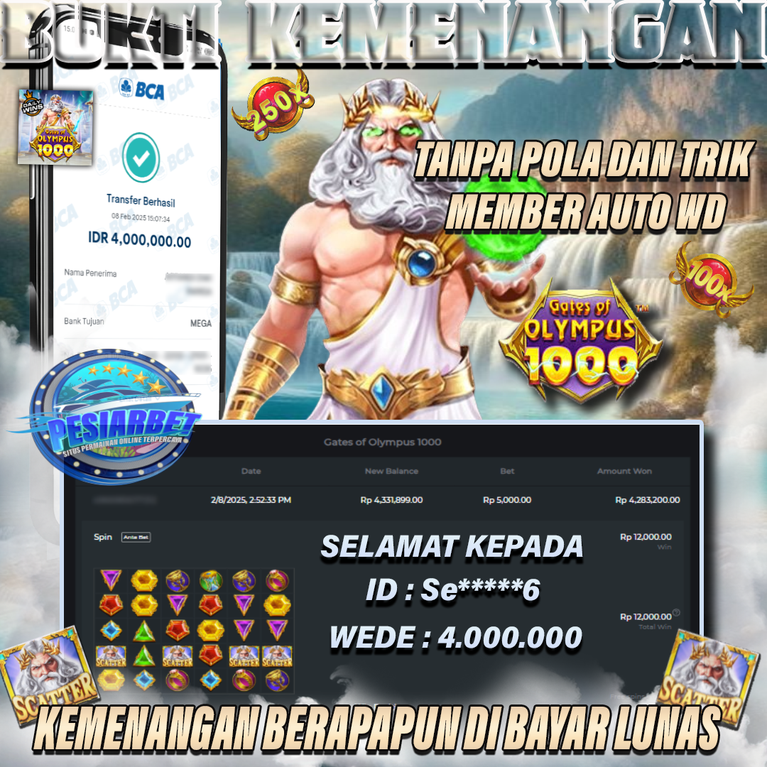 PESIARBET Bukti Kemenangan Slot GATES OF OLYMPUS 1000