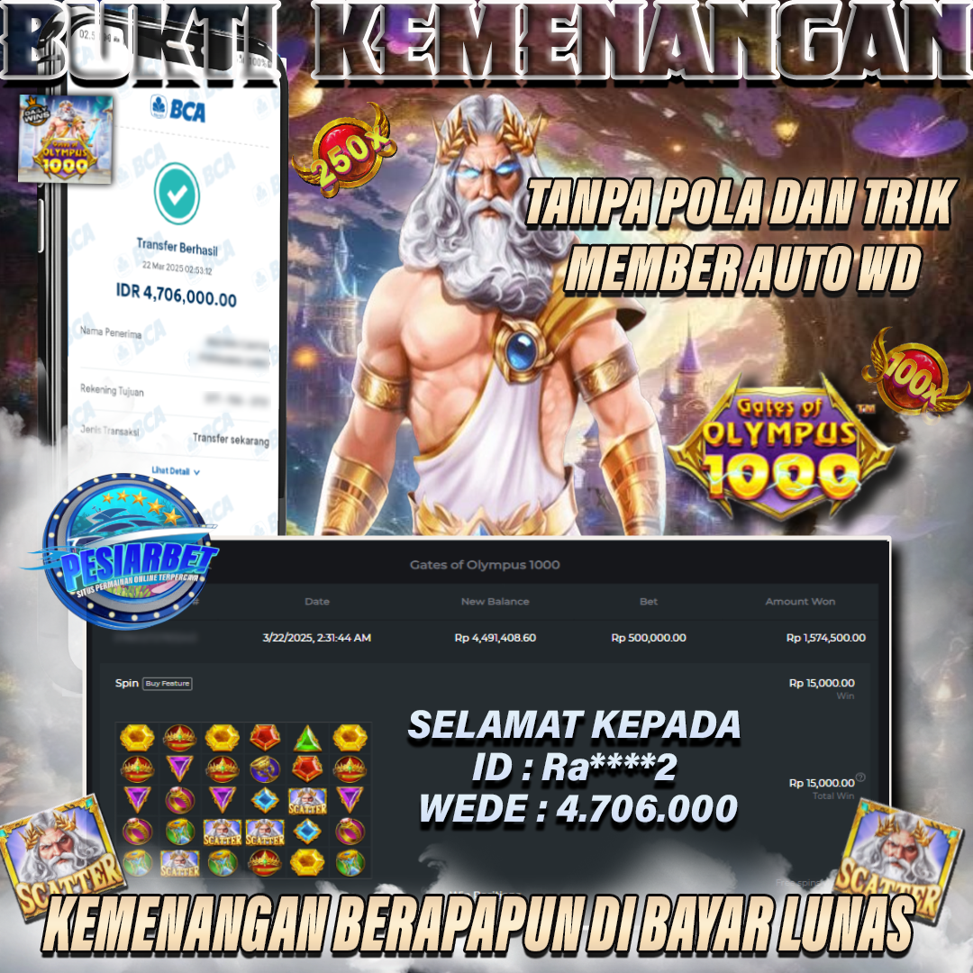 PESIARBET Bukti Kemenangan Slot GATES OF OLYMPUS 1000