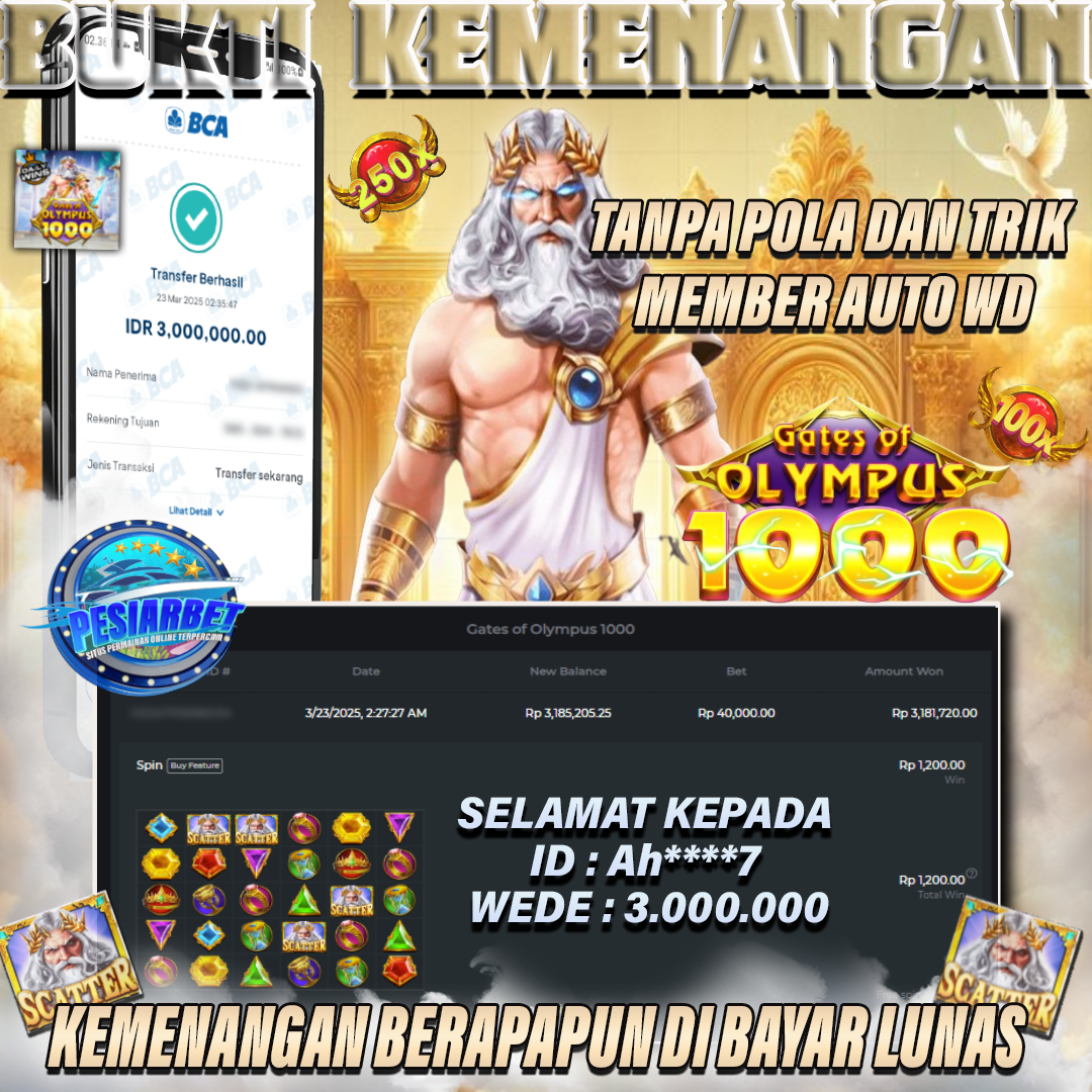 PESIARBET Bukti Kemenangan Slot GATES OF OLYMPUS 1000