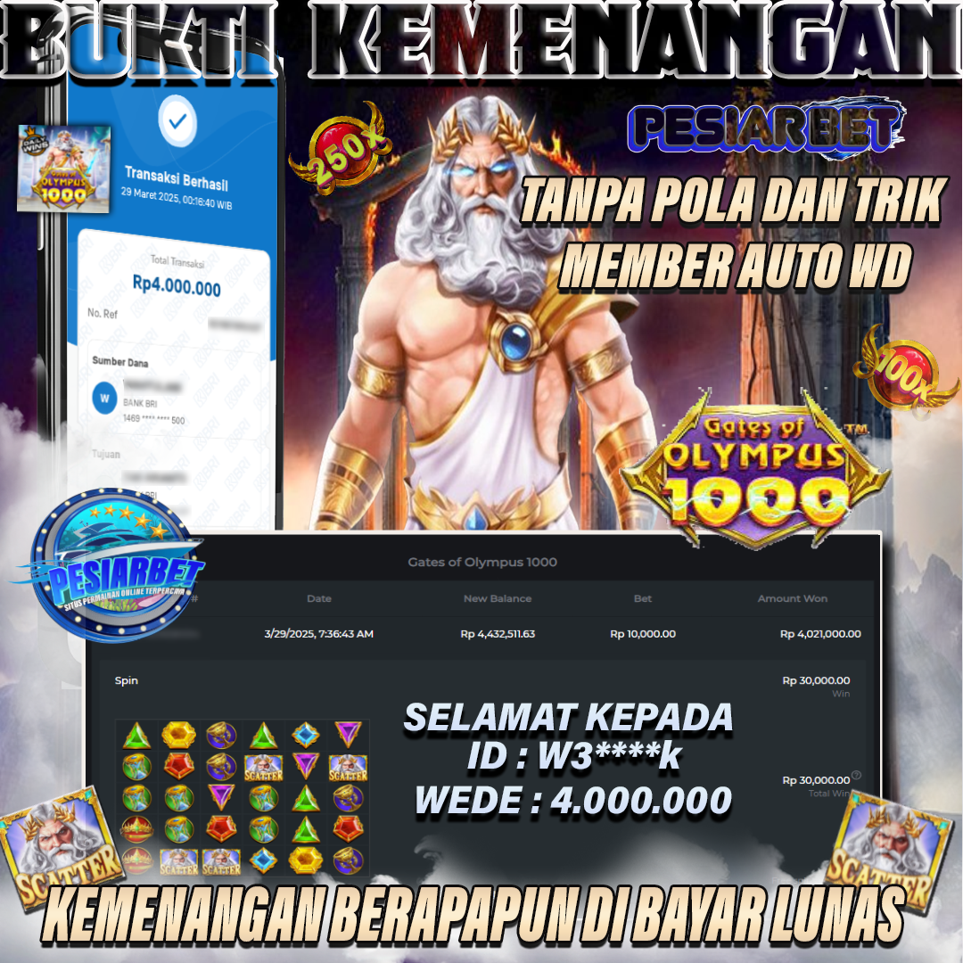 PESIARBET Bukti Kemenangan Slot GATES OF OLYMPUS 1000