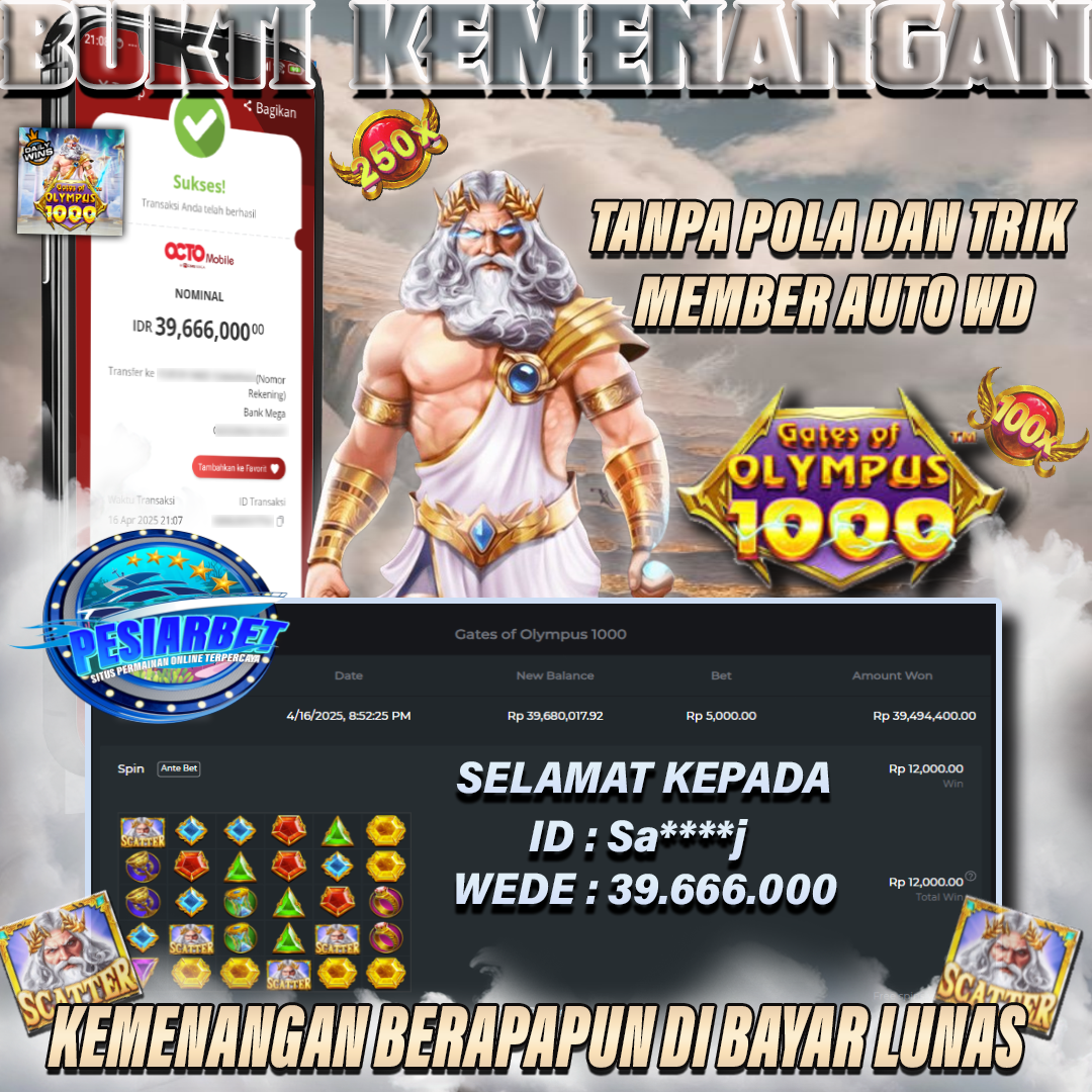 PESIARBET Bukti Kemenangan SLOT GATES OF OLYMPUS 1000