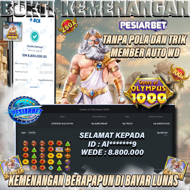 PESIARBET Bukti Kemenangan SLOT GATES OF OLYMPUS 1000