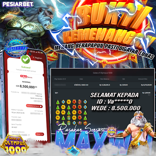 PESIARBET Bukti Kemenangan SLOT GATES OF OLYMPUS 1000