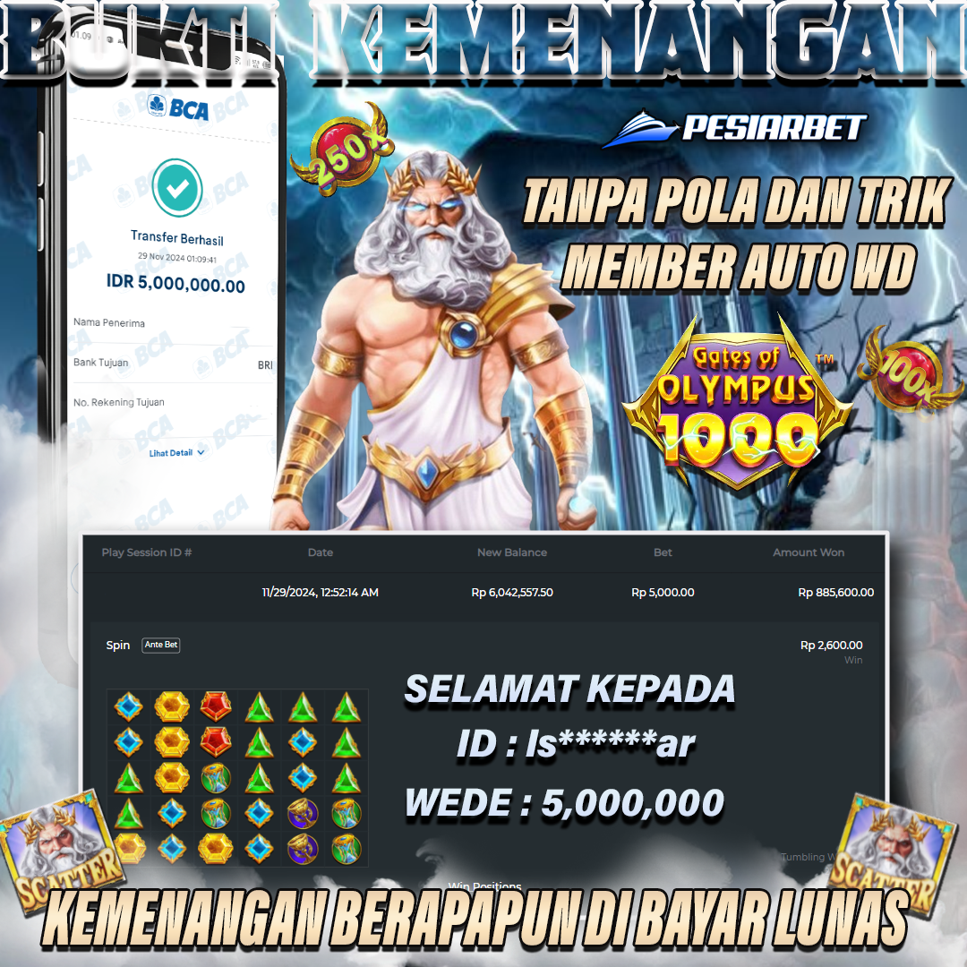 PESIARBET Bukti Kemenangan Slot GATES OF OLYMPUS 1000