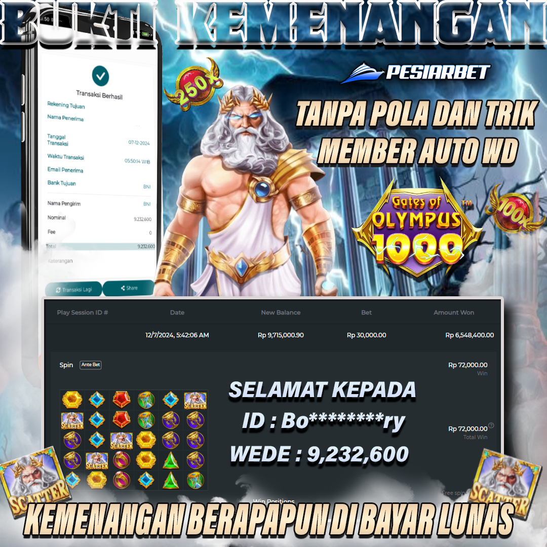 PESIARBET Bukti Kemenangan Slot GATES OF OLYMPUS 1000