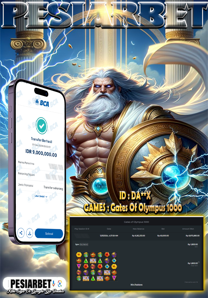 PESIARBET Bukti Kemenangan Slot GATES OF OLYMPUS 1000