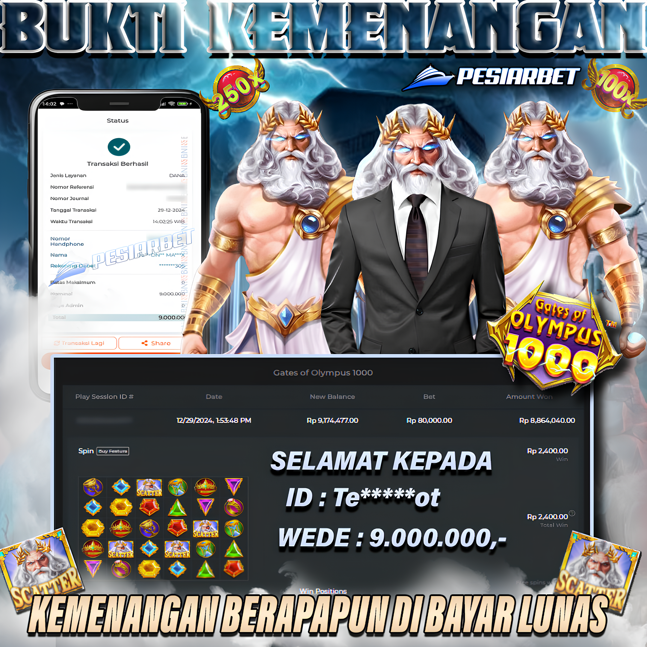 PESIARBET Bukti Kemenangan Slot GATES OF OLYMPUS 1000