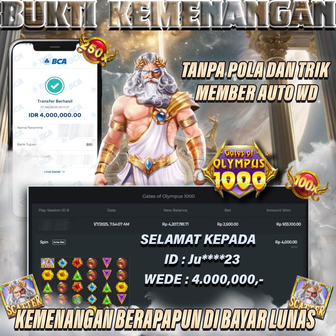 PESIARBET Bukti Kemenangan Slot GATES OF OLYMPUS 1000