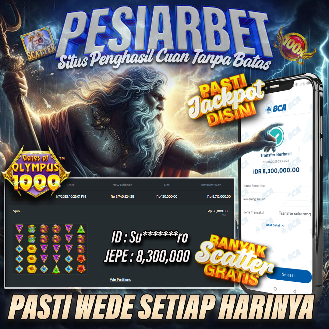 Selamat Kepada Id : Su******ro di Atas Withdraw Rp 8,300,000 Juta Hari ini. Ditunggu Withdraw Selanjutnya dan ajak juga teman temannya bergabung di Pesiarbet