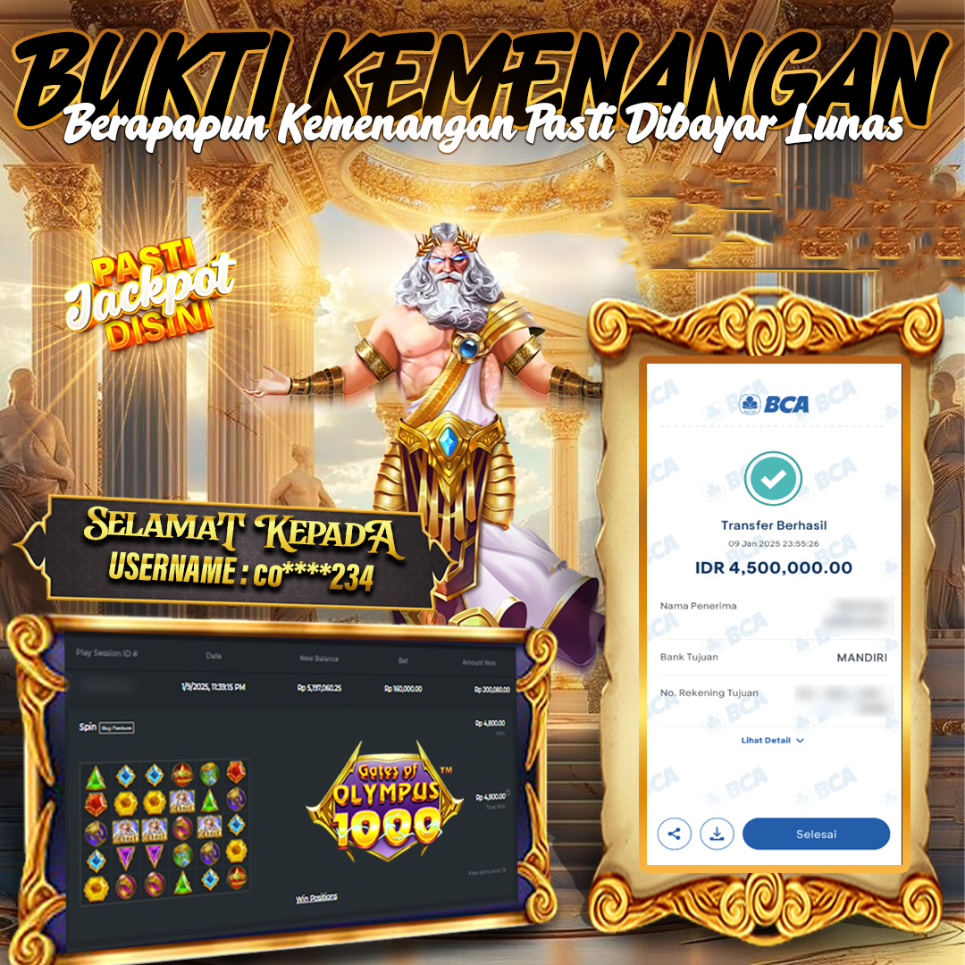 PESIARBET Bukti Kemenangan Slot GATES OF OLYMPUS 1000