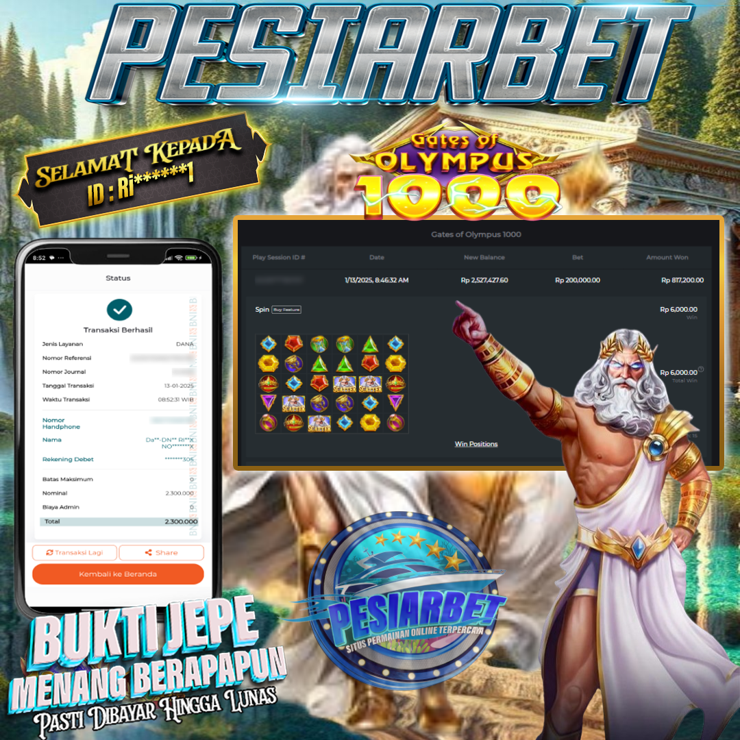 PESIARBET Bukti Kemenangan Slot GATES OF OLYMPUS 1000