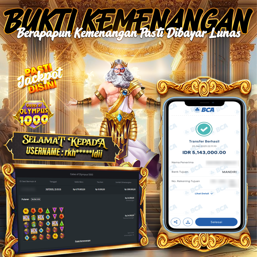 PESIARBET Bukti Kemenangan Slot GATES OF OLYMPUS 1000