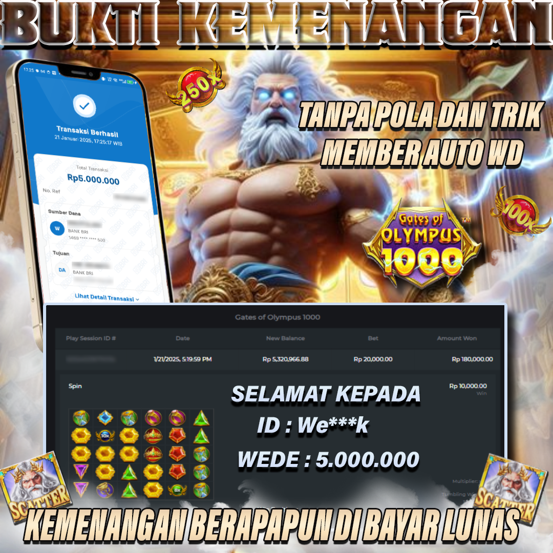 PESIARBET Bukti Kemenangan Slot GATES OF OLYMPUS 1000