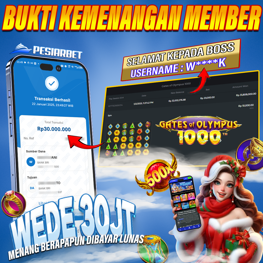 PESIARBET Bukti Kemenangan Slot GATES OF OLYMPUS 1000