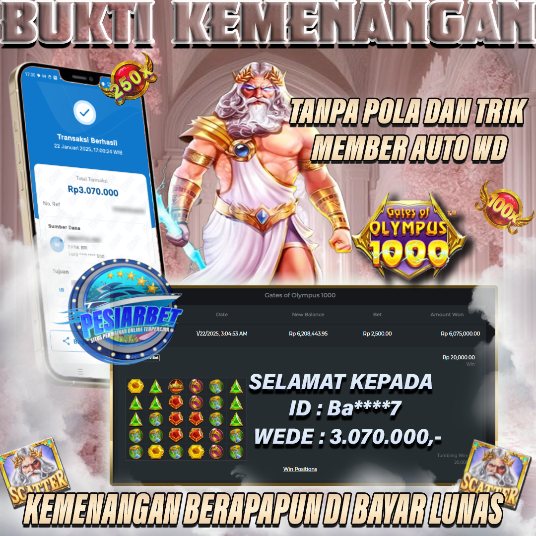 PESIARBET Bukti Kemenangan Slot GATES OF OLYMPUS 1000