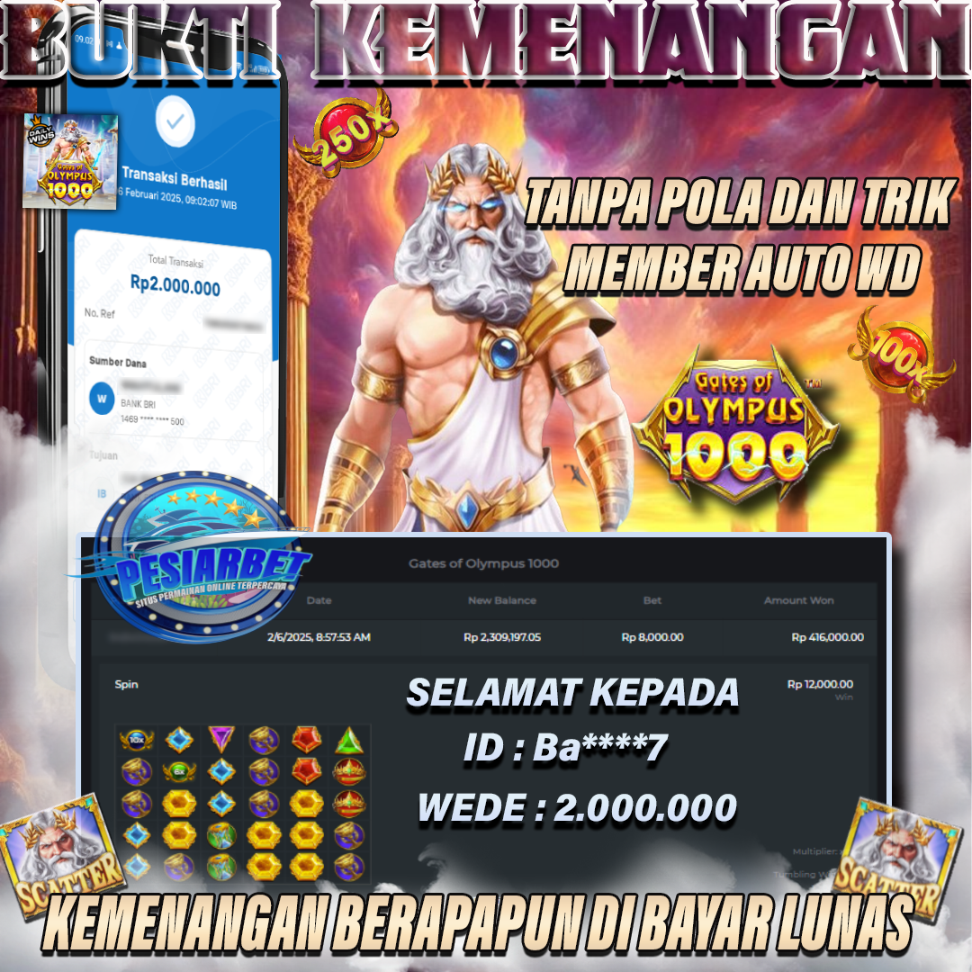 PESIARBET Bukti Kemenangan Slot GATES OF OLYMPUS 1000