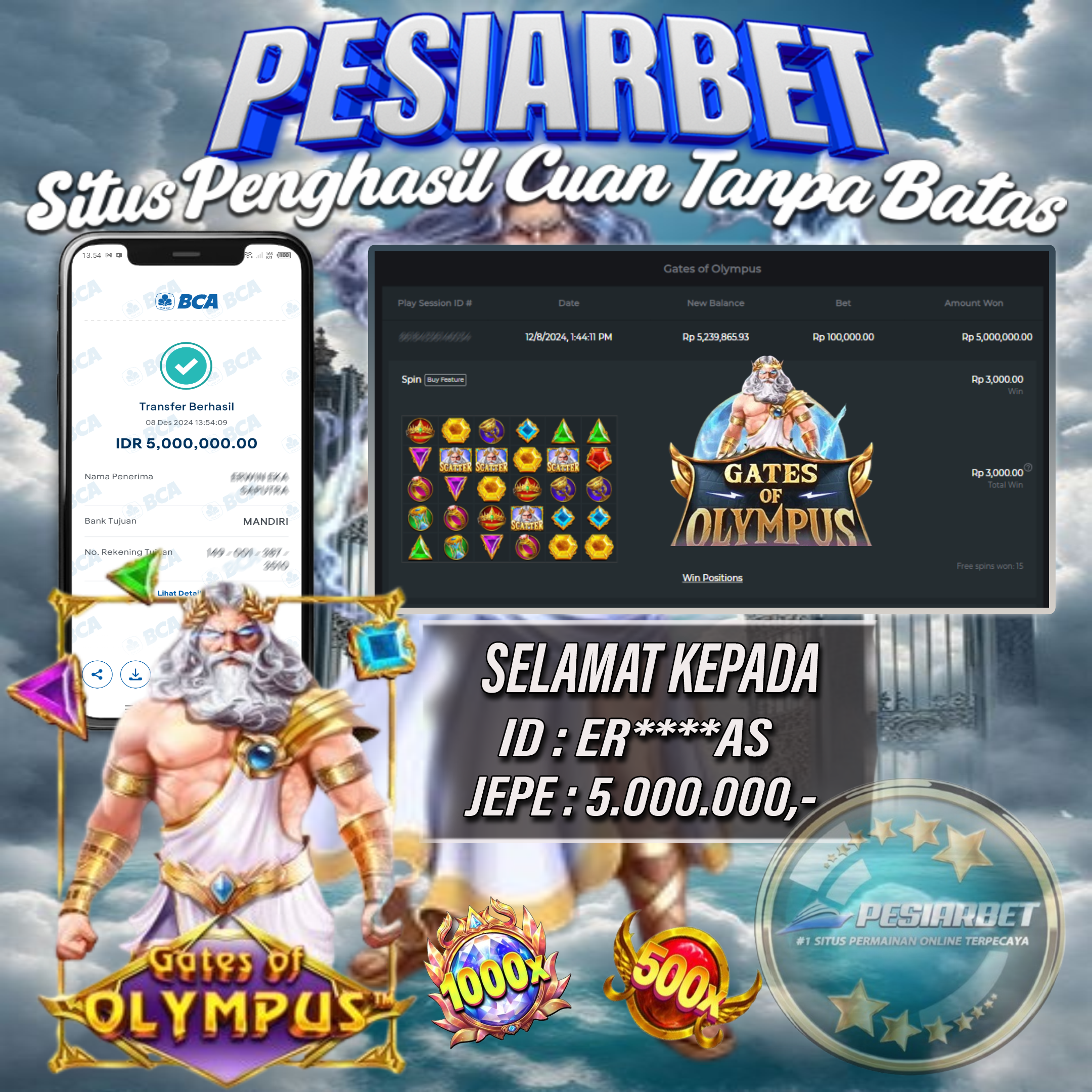 PESIARBET Bukti Kemenangan Slot GATES OF OLYMPUS