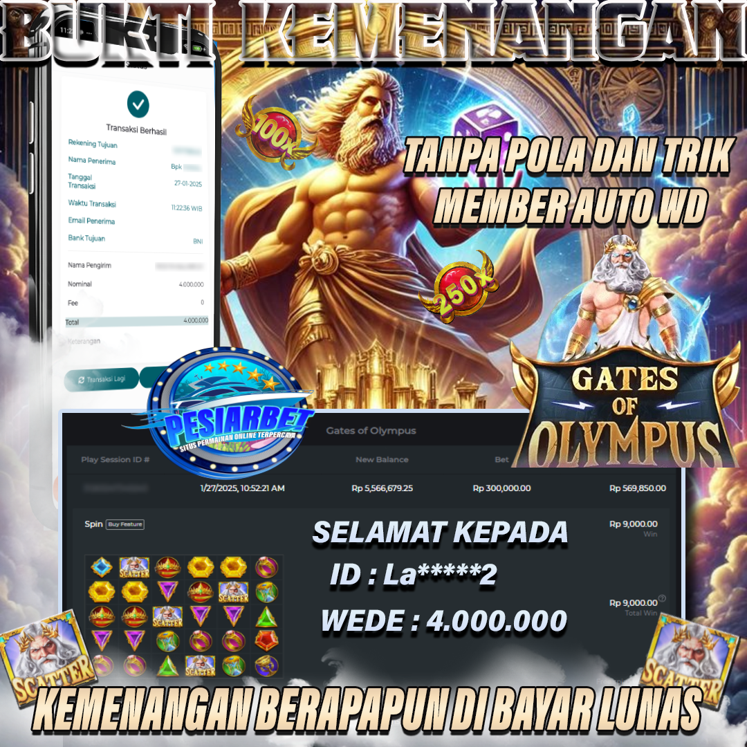 PESIARBET Bukti Kemenangan Slot GATES OF OLYMPUS