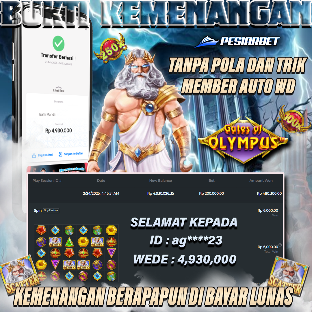 PESIARBET Bukti Kemenangan Slot GATES OF OLYMPUS