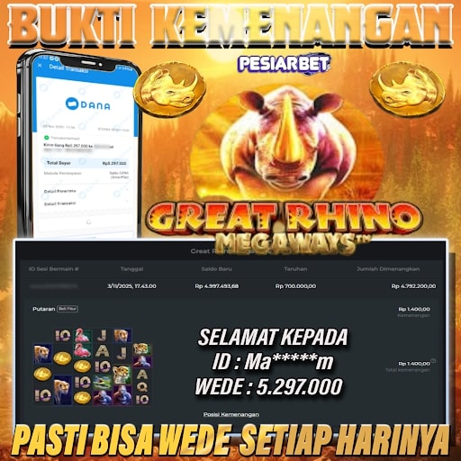 PESIARBET Bukti Kemenangan SLOT GREAT RHINO MEGAWAYS