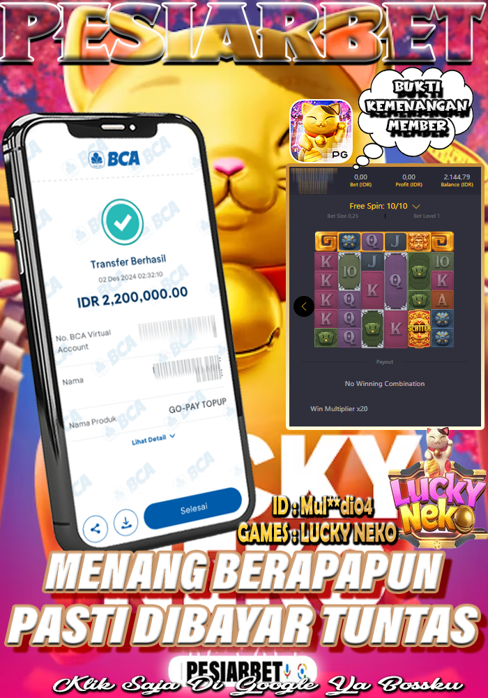 PESIARBET Bukti Kemenangan Slot LUCKY NEKO