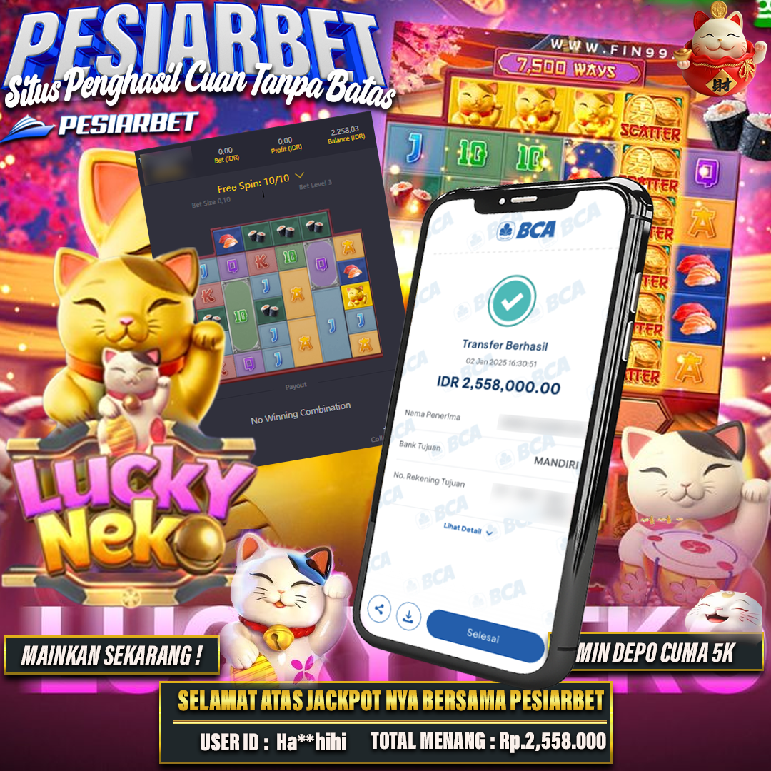 PESIARBET Bukti Kemenangan Slot LUCKY NEKO