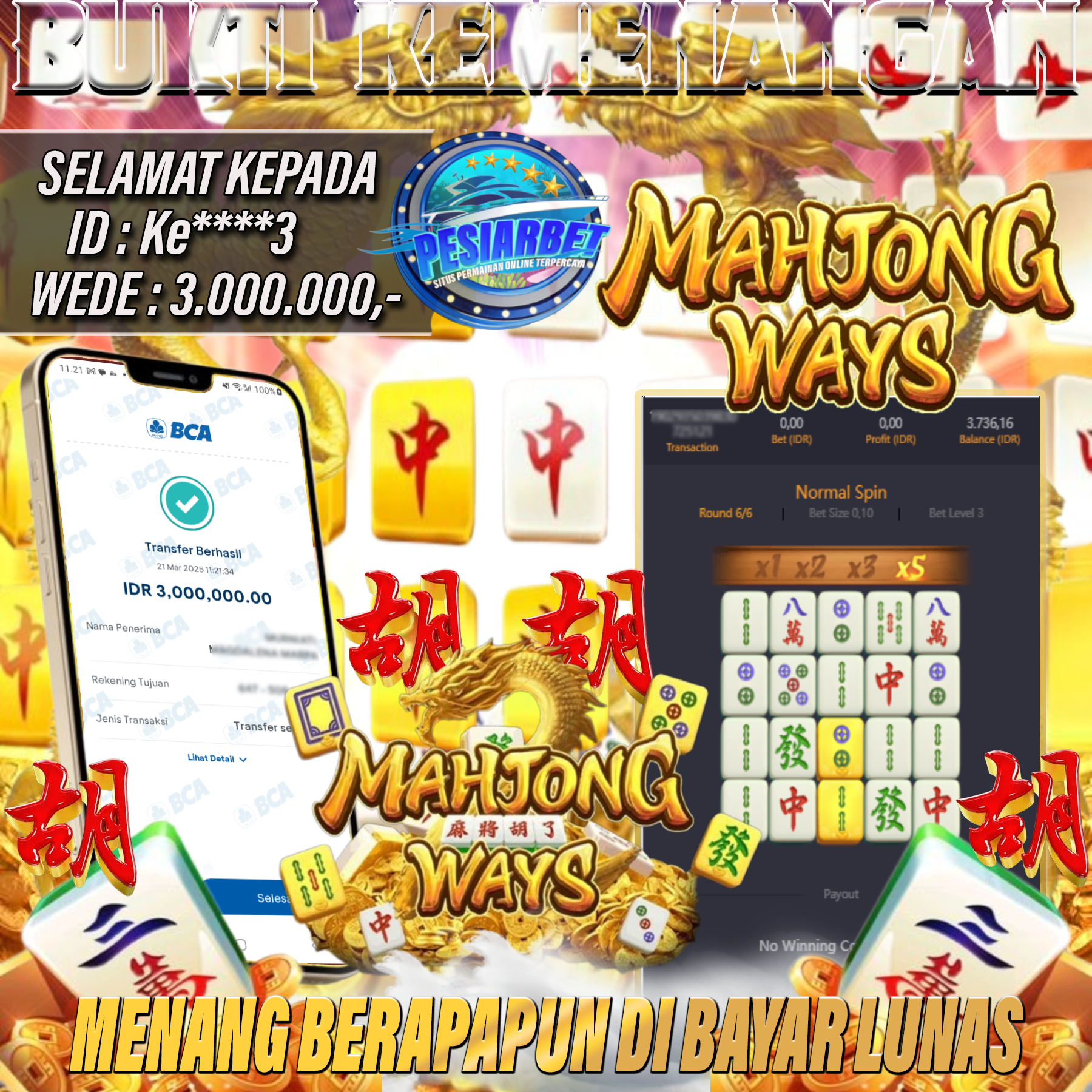 PESIARBET Bukti Kemenangan Slot MAHJONG WAYS