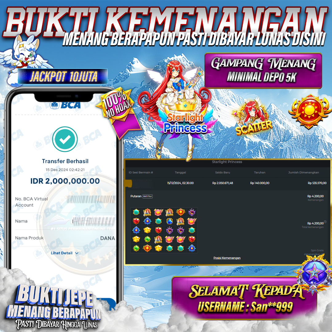 PESIARBET Bukti Kemenangan Slot STARLIGHT PRINCESS
