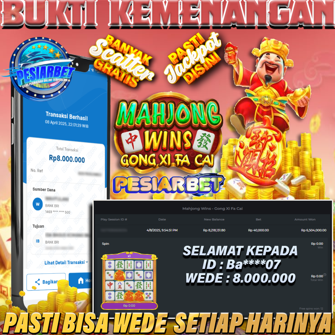 PESIARBET Bukti Kemenangan Slot MAHJONG WINS GONG XI FA CAI