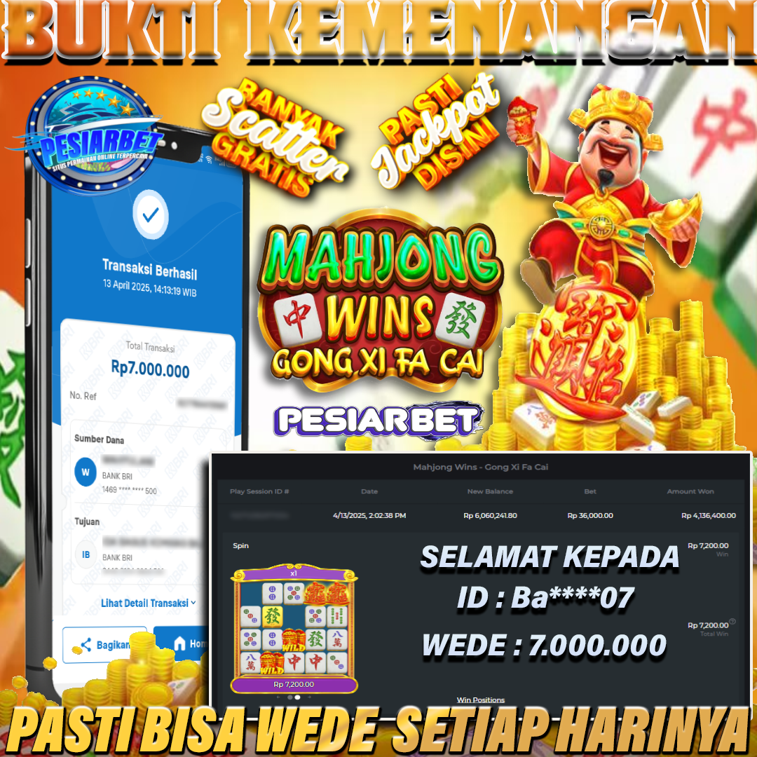 PESIARBET Bukti Kemenangan Slot MAHJONG WINS GONG XI FA CAI