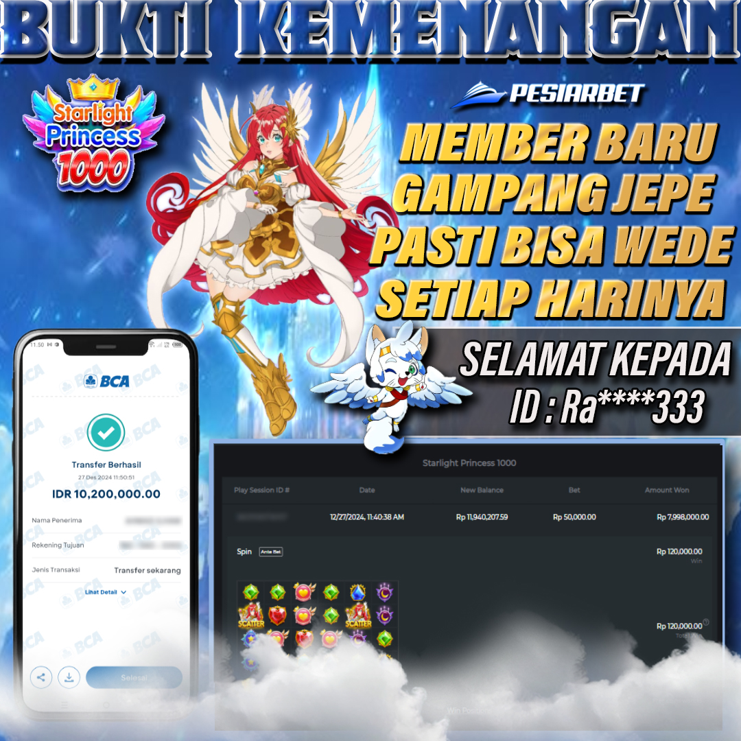 PESIARBET Bukti Kemenangan Slot STARLIGHT PRINCESS 1000