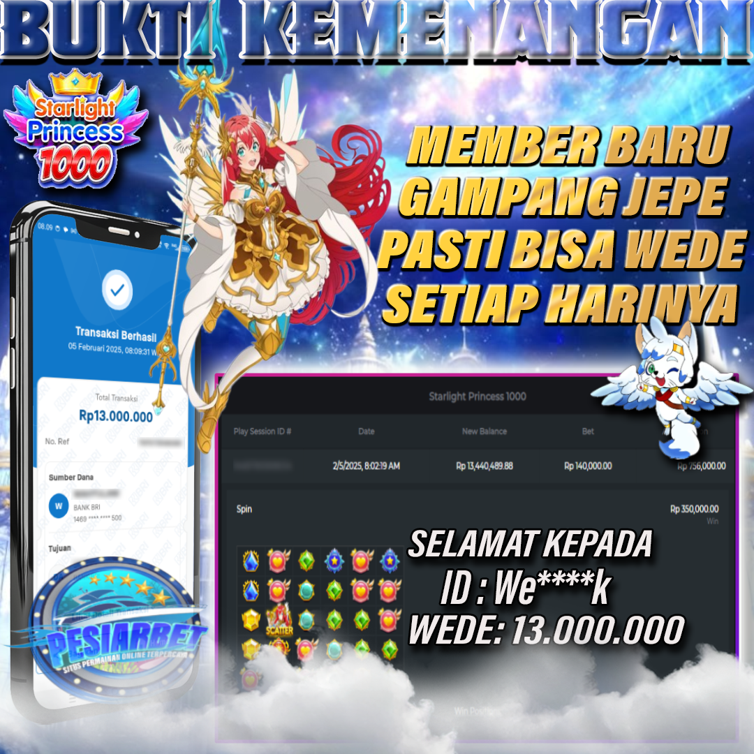 PESIARBET Bukti Kemenangan Slot STARLIGHT PRINCES 1000
