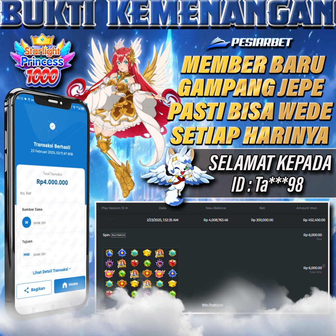 PESIARBET Bukti Kemenangan Slot STARLIGHT PRINCES 1000