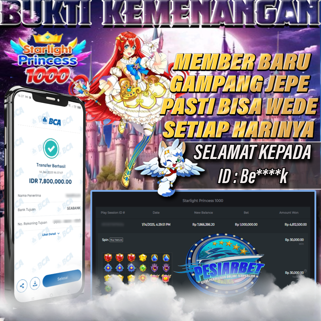 PESIARBET Bukti Kemenangan Slot STARLIGHT PRINCESS 1000