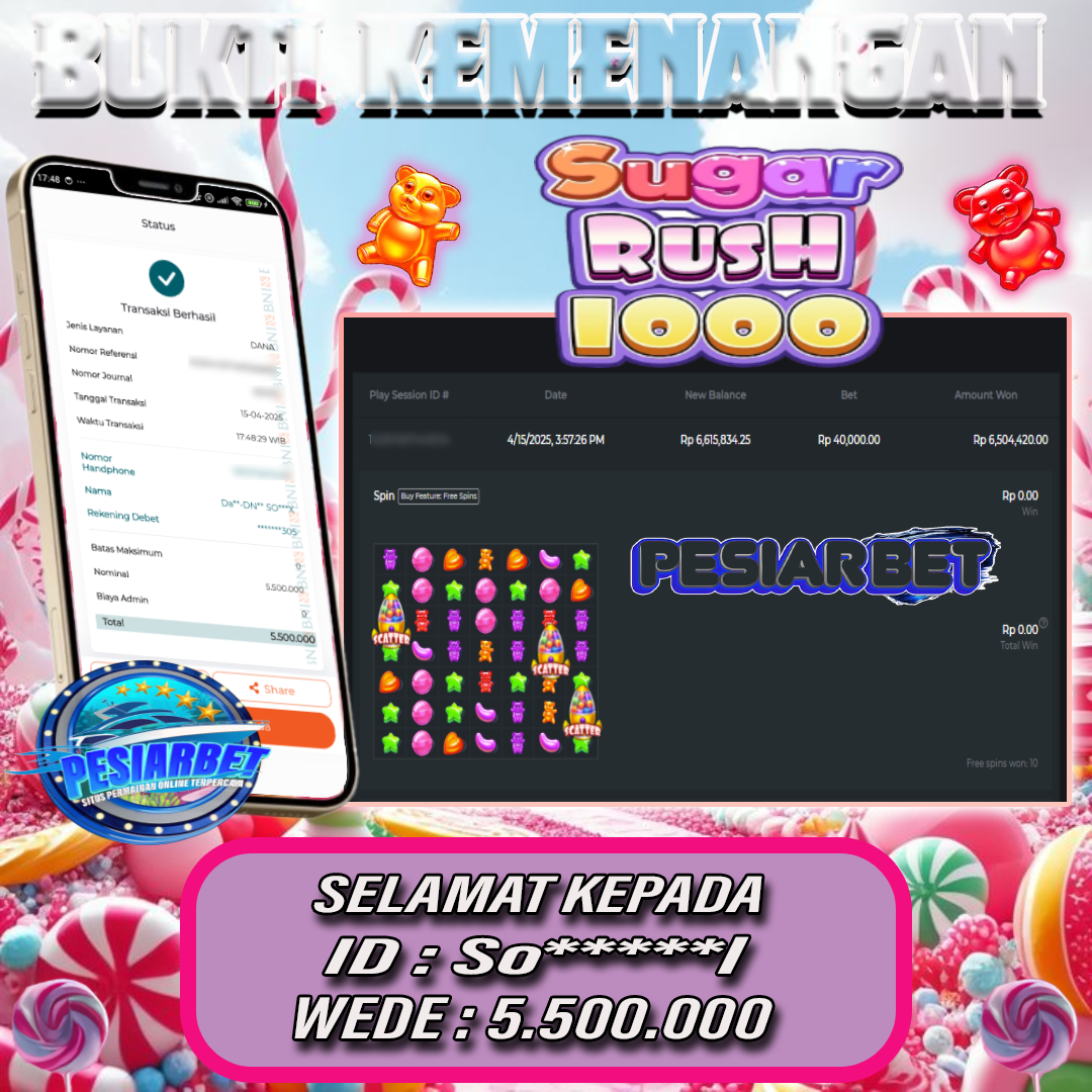PESIARBET Bukti Kemenangan SLOT SUGAR RUSH 1000