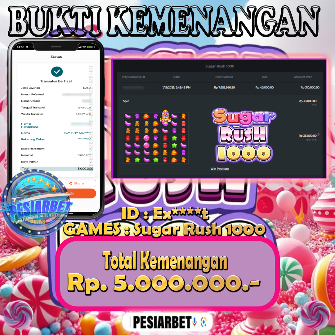 PESIARBET Bukti Kemenangan Slot SUGAR RUSH 1000